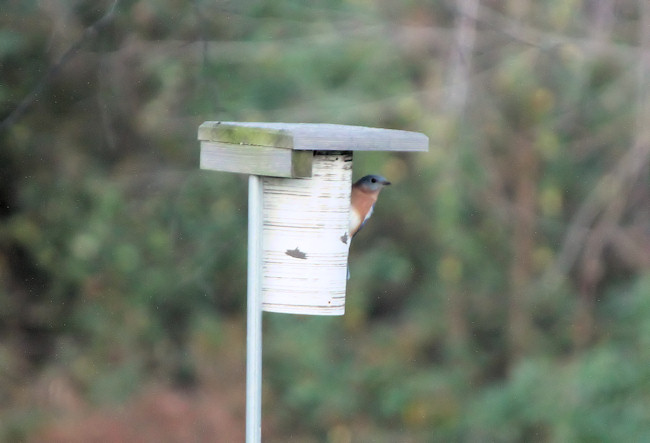 male bluebird exiting nest box