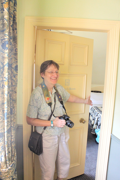 Lynda opening up our door